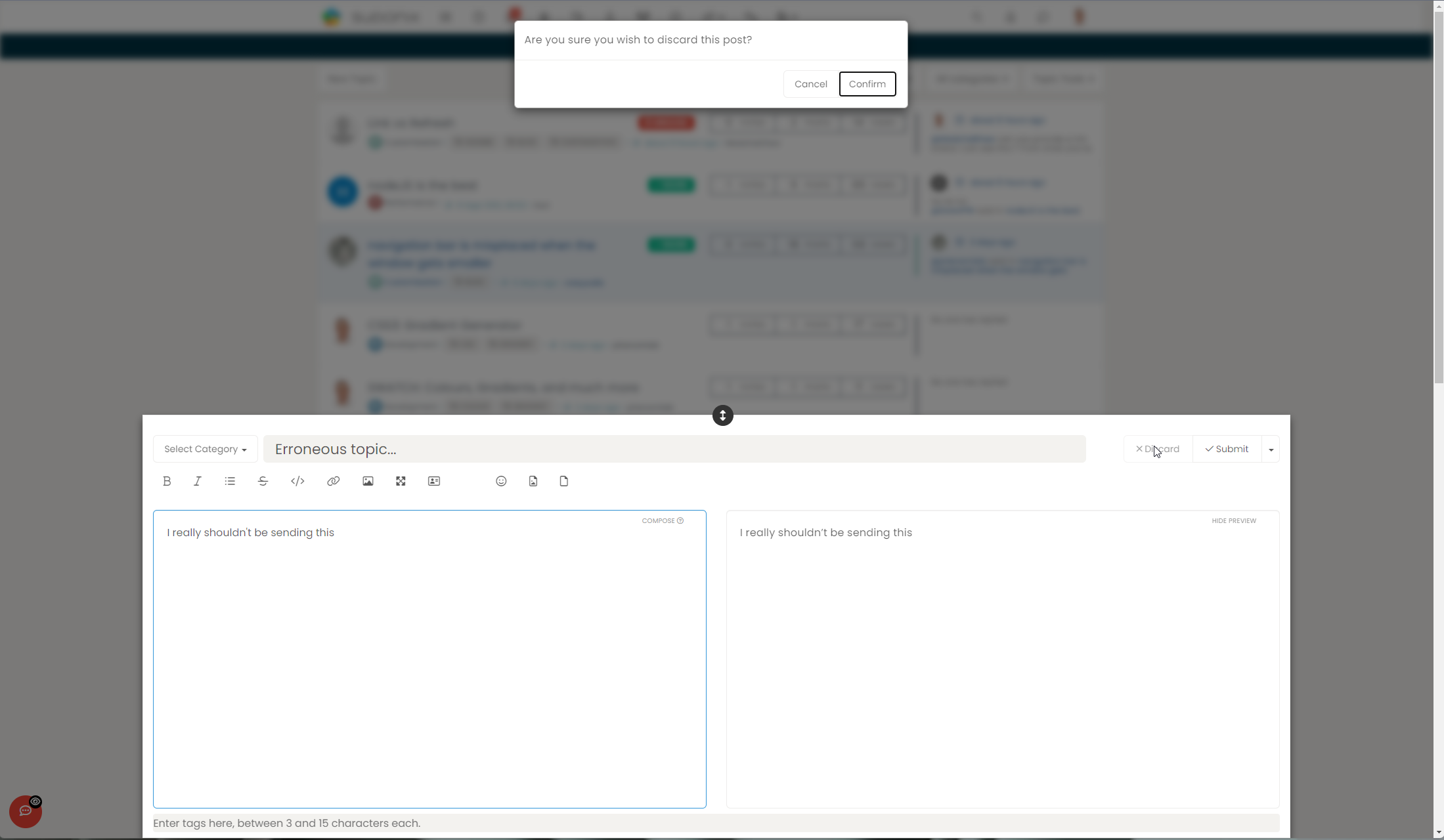 Note that the blur value can be increased or decreased according to taste. The lower the blur, the more “legible” the background becomes. If you want to cover the entire screen apart from the modal and the component it references, then use #panel. If you prefer the navbar to still be visible (but not clickable) then you can replace #panel with #content.