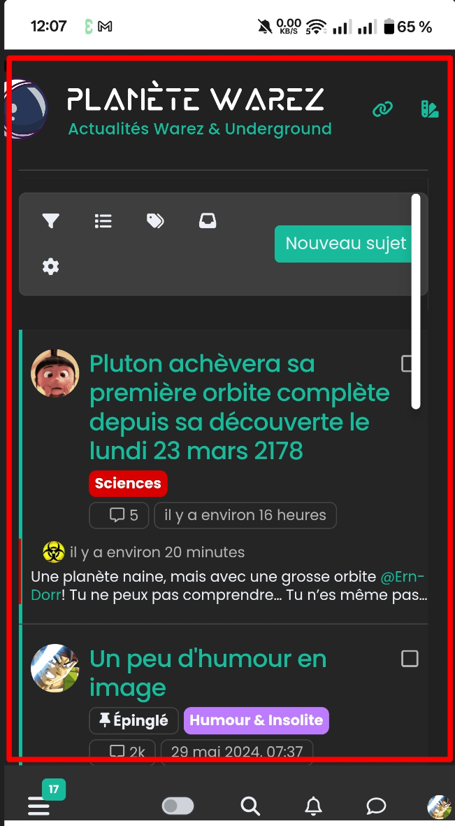<div id="floatright"> <div class="d-flex justify-content-center mt-2 mb-2"> <a href="https://ko-fi.com/K3K519RHI6" class="btn btn-primary d-flex align-items-center btn-donation" target="_blank"> <img src="https://storage.ko-fi.com/cdn/logomarkLogo.png" alt="Icône café" class="me-2"> Faire un don </a> </div> <a class="feedback-menu-far-right" target="_blank" href="/politique">Politique </a> ...However, as soon as I go to a profile page, the users page, the group page, it is broken like this :