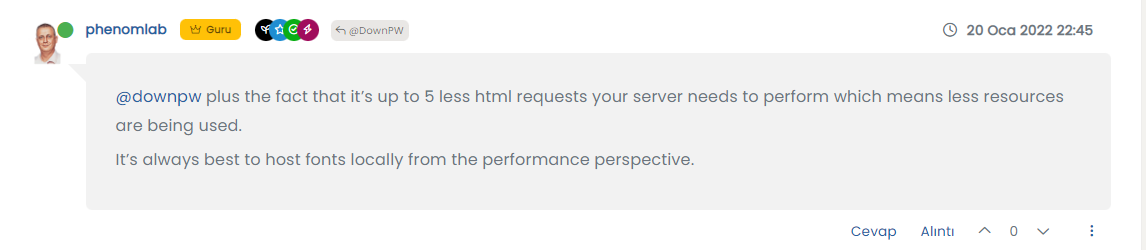 @media (min-width: 1200px) { li.topic-owner-post .content, li.topic-response-post .content { background: lightgrey; padding: 30px; border-radius: 6px; } .topic .posts.timeline .timeline-event>div:not(.content), .topic .posts.timeline>[component=post]>div:not(.content) { margin-left: 2.5rem; } [data-index="0"] .content[component="post/content"]:before, .topic-owner-post:before, .topic-response-post:before { border-left: 20px solid transparent; border-top: 20px solid lightgrey; top: 66px; content: ""; position: absolute; left: 70px; } li.self-post .content:not(.isSolved [component="post/content"])[itemprop="text"] { background: lightblue; padding: 30px; border-radius: 6px; margin-right: 8.5rem !important; } li.self-post .content:not(.isSolved [component="post/content"]):after, li.self-post.topic-owner-post:first-child:after { border-right: 20px solid transparent; border-top: 20px solid var(--self-post); top: 66px; content: ""; position: absolute; right: 90px; left: unset !important; border-bottom: none !important; bottom: unset !important; } li.self-post.topic-response-post .pull-left { float: right !important; } li.self-post .content:not(.isSolved [component="post/content"]):after, li.self-post.topic-owner-post:first-child:after { border-right: 20px solid transparent; border-top: 20px solid lightblue; top: 58px; content: ""; position: absolute; right: 95px; left: unset !important; border-bottom: none !important; bottom: unset !important; } }Add this to your custom JS