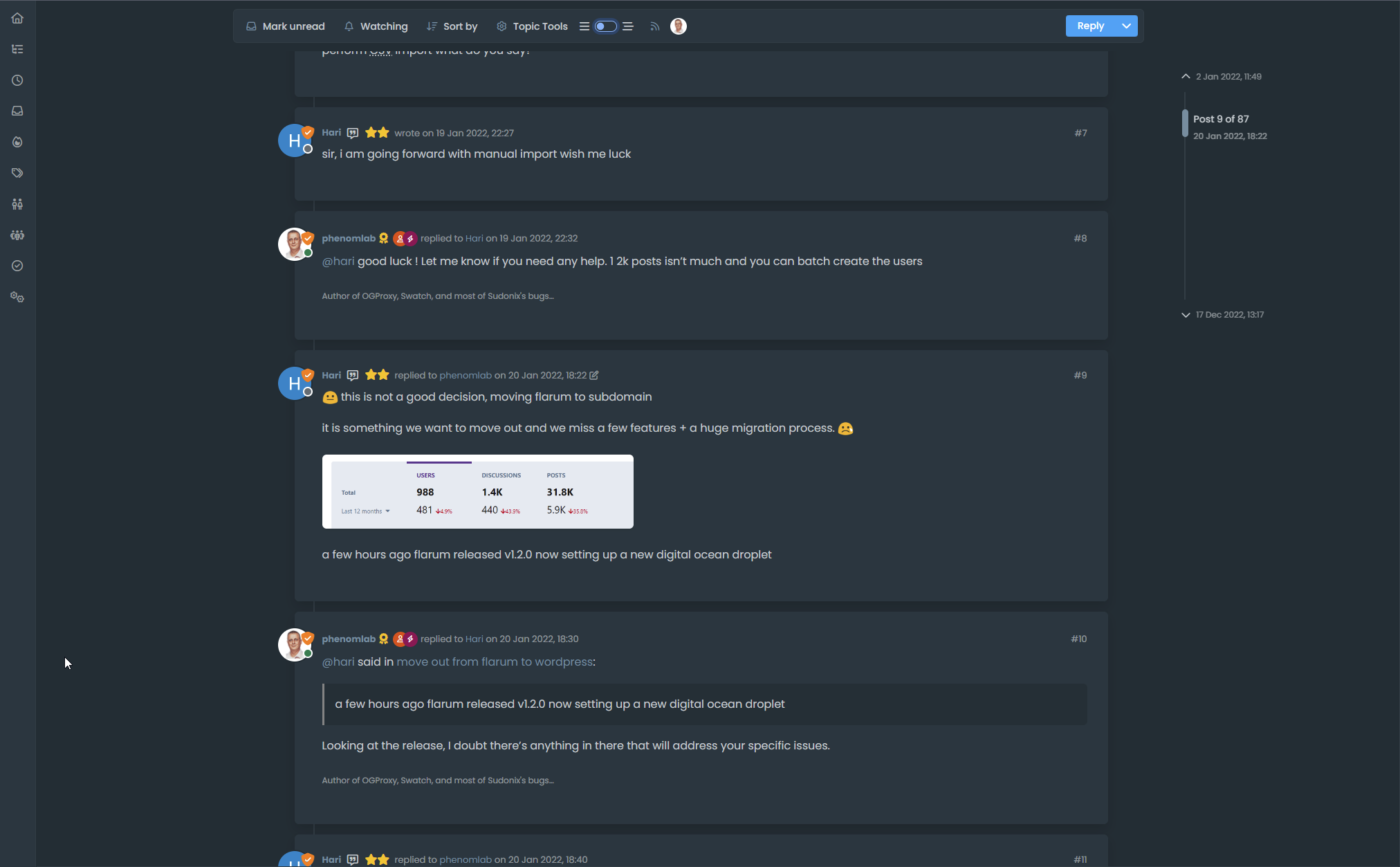 3.7.0makes in the DOM, meaning the element we used to target pre this release no longer exists. To resolve this, locate the line (within thethreadedJS function)$('.topic .sticky-tools ul.list-unstyled').append(threadView);And replace it with