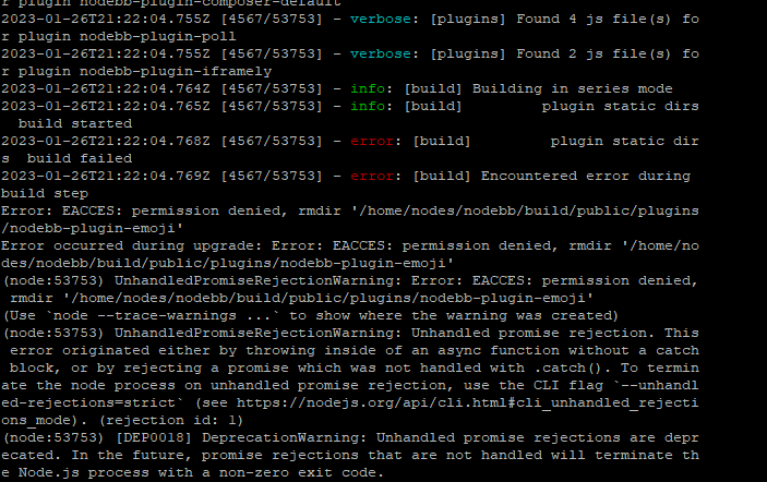 Gettin Erors NodeBB